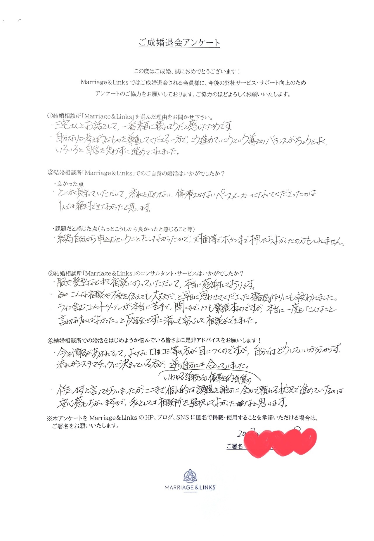 ⓵結婚相談所「Marriage&Links」を選んだ理由をお聞かせ下さい。